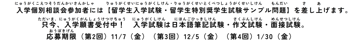 留学生(りゅうがくせい)のための 入学個別相談会(にゅうがくこべつそうだんかい)